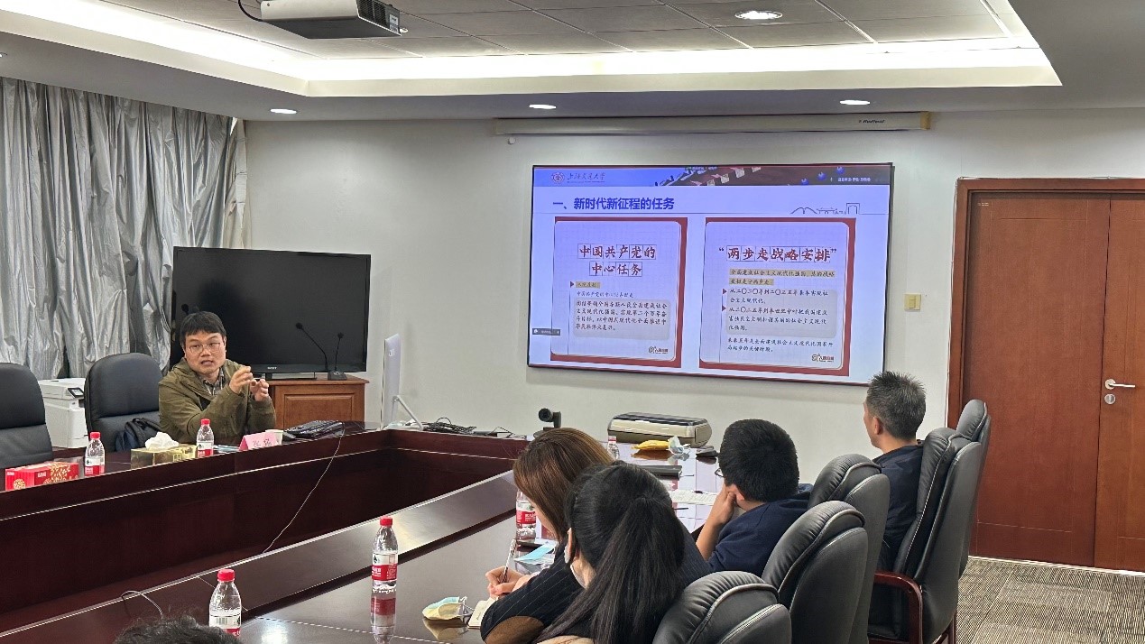 2022年11月18日,为深入学习、深刻领悟习近平总书记二十大报告精神,船海工程试验中心党支部、水下工程研究所党支部和海上装备与系统研究所党支部在海洋深水试验池五楼会议室开展了联合主题党日活动,邀请马克思主义凯发 助理教授张杨老师为支部党员讲授题为《从二十大报告看百年未有之变局下高质量发展的实现路径》的专题党课。学习活动由船海工程试验中心党支部书记李俊主持,共有30余名党员参加。