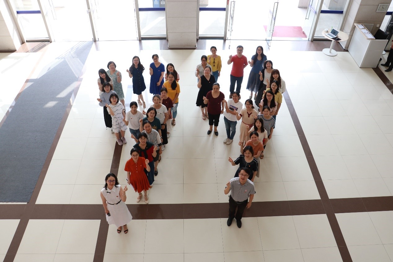 知识竞赛结束后,全体党员在院名石前合影留念。