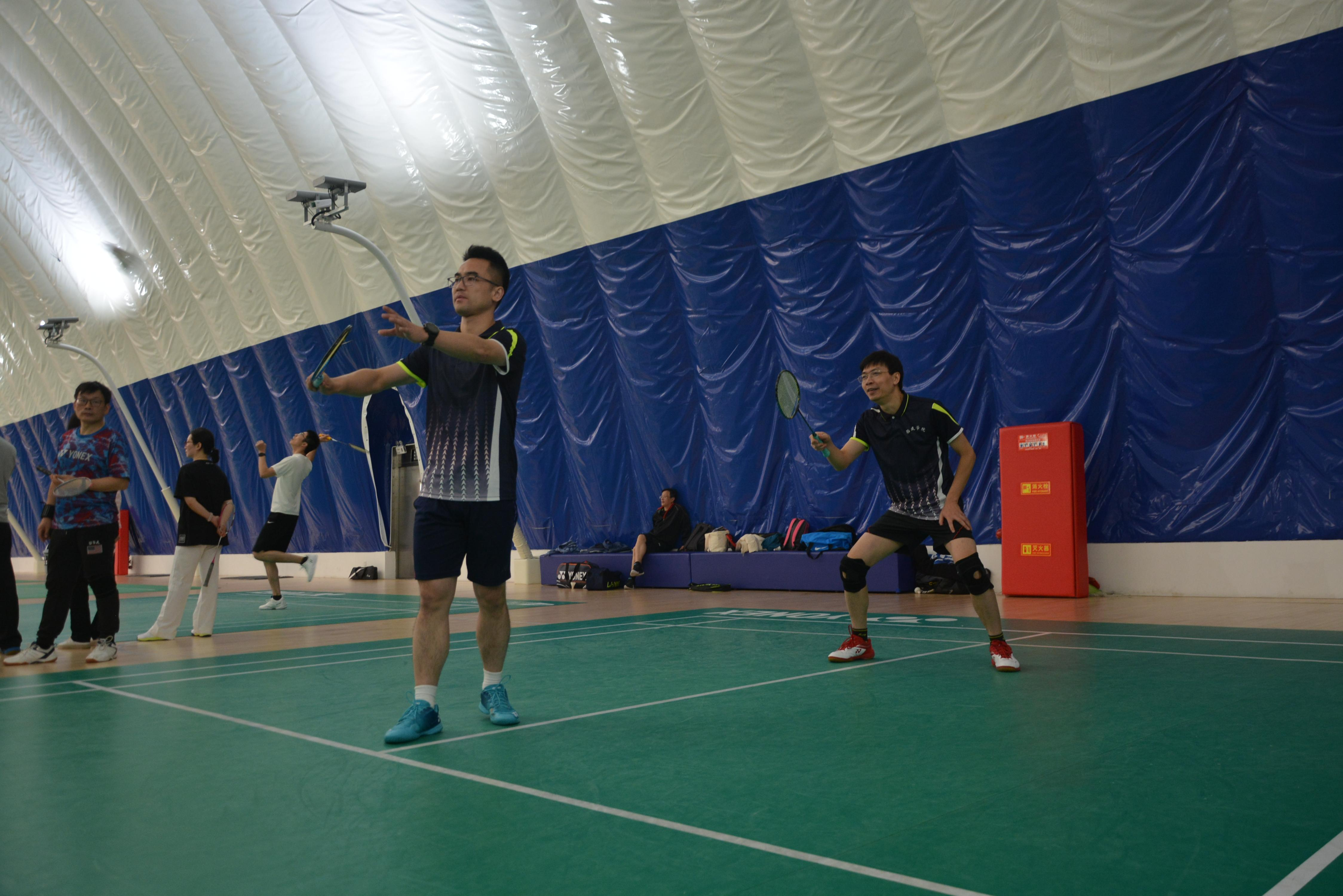 之后是“五羽轮比”趣味赛,由张卫刚、王喜芳、薛鸿祥和赵金城四位老师领队,现场招募选手组成四支五人组队伍,按照“五羽轮比”规则,一方获得10分后双方各替换一名选手进入下一局,以此类推,直到赢得50分。经过激烈的角逐,由薛鸿祥和张卫刚带领的队伍分别获得趣味赛第一、二名,赵金城和王喜芳带领的队伍分别获得三、四名。
