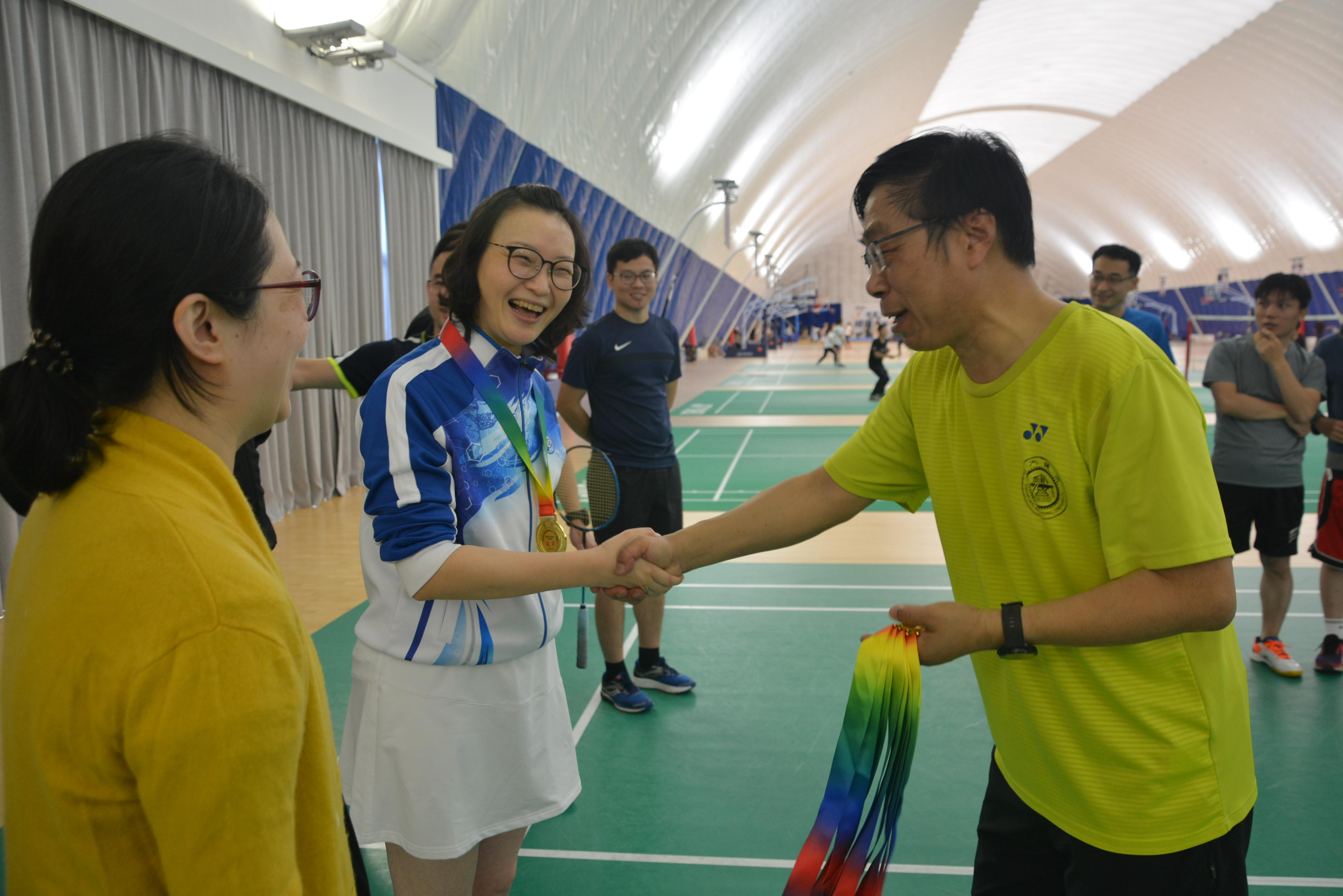 比赛结束后,由张卫刚部长、周薇书记等领导分别为团体赛冠、亚、季军进行颁奖。最后,队员们经过拉伸放松,活动圆满结束!
