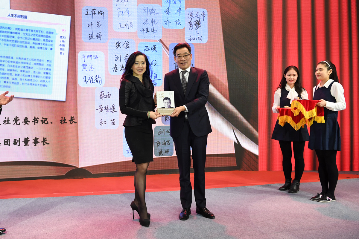 在新书发布会上,赵锡成学长向上海交大赠书,希望与母校师生共勉。姜斯宪接受学长赠书,并为每位在场的嘉宾转达了这份珍贵的礼物。