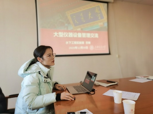 庞红犁详细介绍了学校实验室联合检查的具体要求以及大型仪器设备使用记录本(2020年版)填报的注意事项,希望各实验室应对照学校实验室联合检查工作要点切实落实各项管理工作,逐步推进实验室规范化运行。本次会议还邀请水下工程实验室的苏婧老师分享交流大型仪器设备管理经验。苏老师详细介绍了水下工程实验室大型仪器设备的管理情况和具体做法,并和与会的老师们交流的大型仪器设备管理心得。