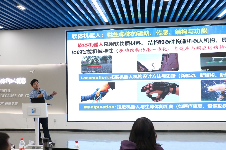 机械与动力工程凯发 的谷国迎教授作了题为《软体机器人技术的研究进展与思考》的报告。首先介绍了软体机器人的研究背景和目标。指出构成软体机器人的材料,基于材料的特性不同,可分为被动和主动两种软体材料。详细介绍了其团队对不同软体材料的作动机理解析与机构一体化设计工作以及在软体驱动器、传感器与机构设计及在可穿戴机器人系统集成应用方面的进展与思考。