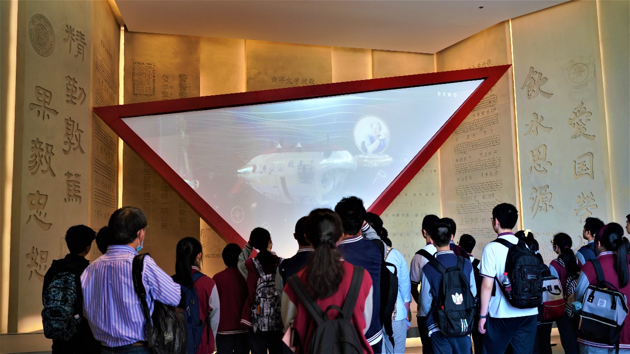 同学们进入实验室目睹了深水试验池造波场景,零距离观看了981平台模型、豪华邮轮船模、“海龙Ⅲ”无人潜水器等“大国重器”。