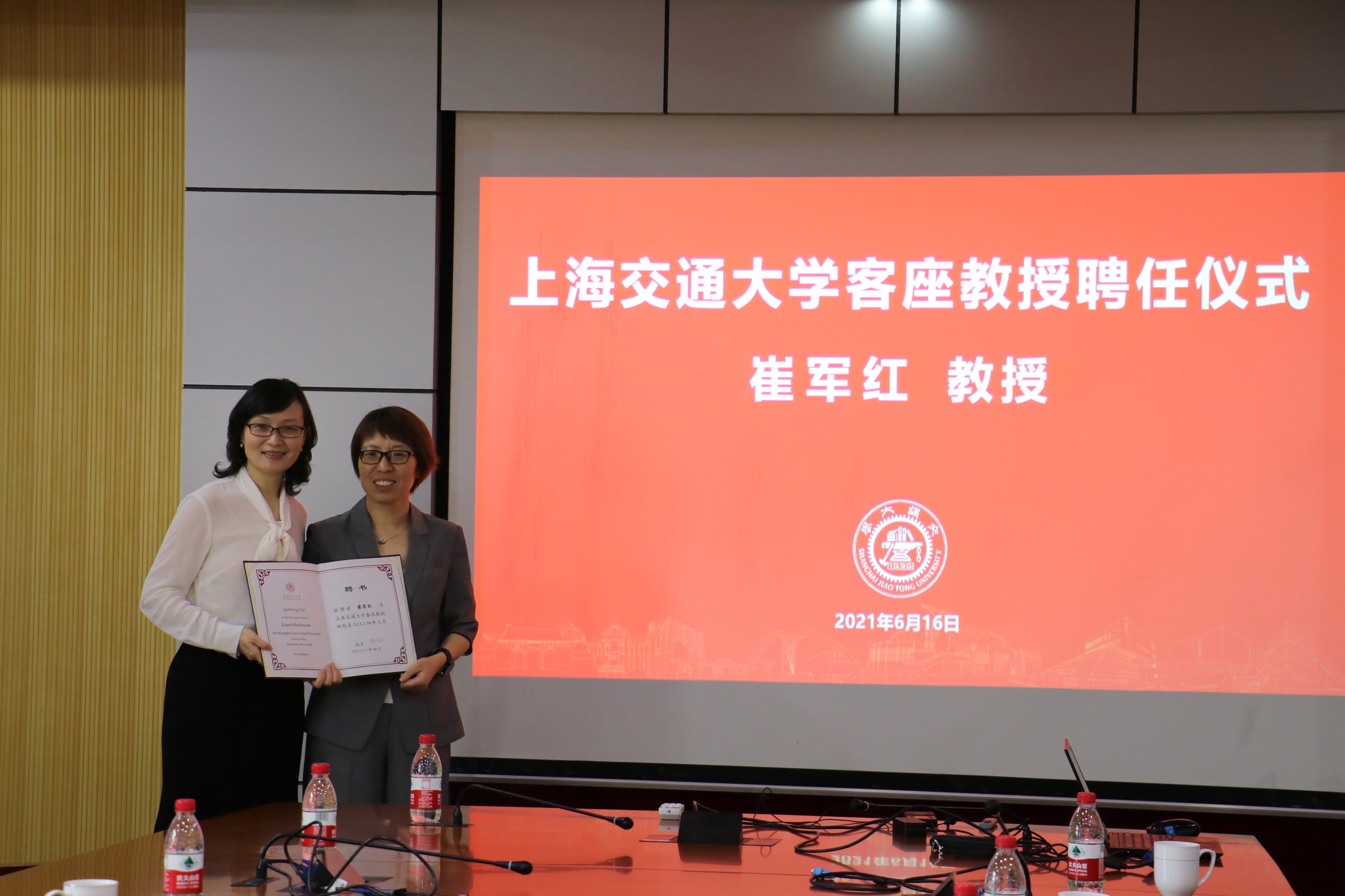 廖世俊介绍了崔军红教授的学术成就和主要研究领域。欢迎仪式后,周薇书记代表学校授予崔军红“上海交通大学客座教授”并颁发聘书。崔军红教授表达了对学校和凯发官网 的衷心感谢,她表示今后会在智慧海洋技术领域为学校的人才培养和学术交流做出积极贡献。