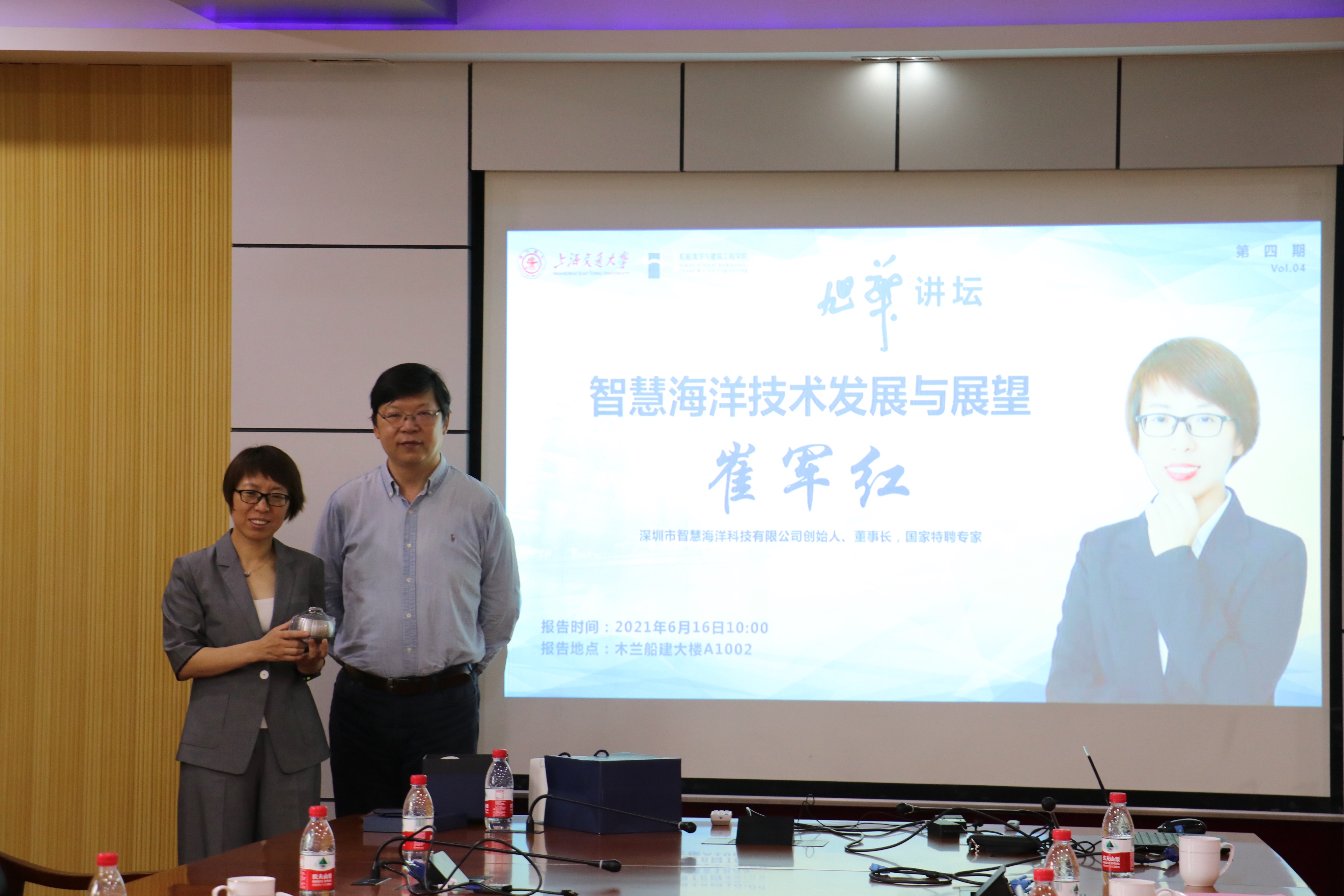 6月16日上午,上海交通大学客座教授受聘仪式在木兰船建大楼举行,吉林大学智慧海洋研究中心主任、中组部国家特聘专家、深圳市智慧海洋科技有限公司创始人及董事长崔军红教授受聘上海交通大学客座教授,同时也举办了第四期的旭华讲坛。凯发官网 党委书记周薇、院长廖世俊、副院长薛鸿祥、院长助理张璐璐、易宏教授、范军教授、李铁教授、人力资源办主任苏丽娜及凯发官网 师生代表参加。会议由薛鸿祥主持。