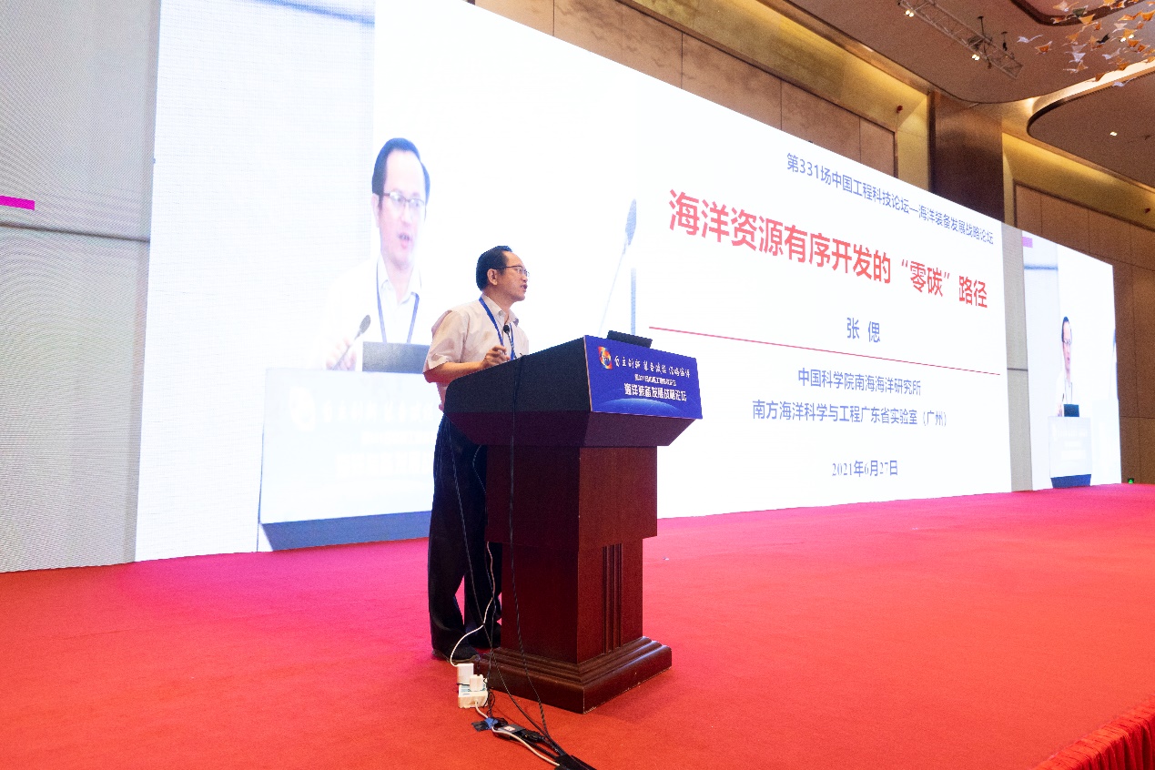 张偲院士做题为《海洋资源有序开发的”零碳“路径》的报告,他指出可燃冰等海洋资源是人类未来能源发展的制高点,同时相关开采活动生态安全风险也是国际重要关切。但是燃冰分解、天然气渗漏等大规模甲烷泄漏可引发海底地质灾害,造成海水酸化和氧枯竭,引起海洋生物大量死亡和严重的温室效应,带来环境生态灾难,商业开发前必须采取长期的生态环境监测、实验、定量评估和生态保护举措。他认为必须要建立包含模拟仿真实验系统、保障支撑系统、原位智融研究系统(海底实验室)的冷泉生态系统研究装置,为可燃冰开发提供全生命周期的实时长期观测、模拟验证和预警技术支持。