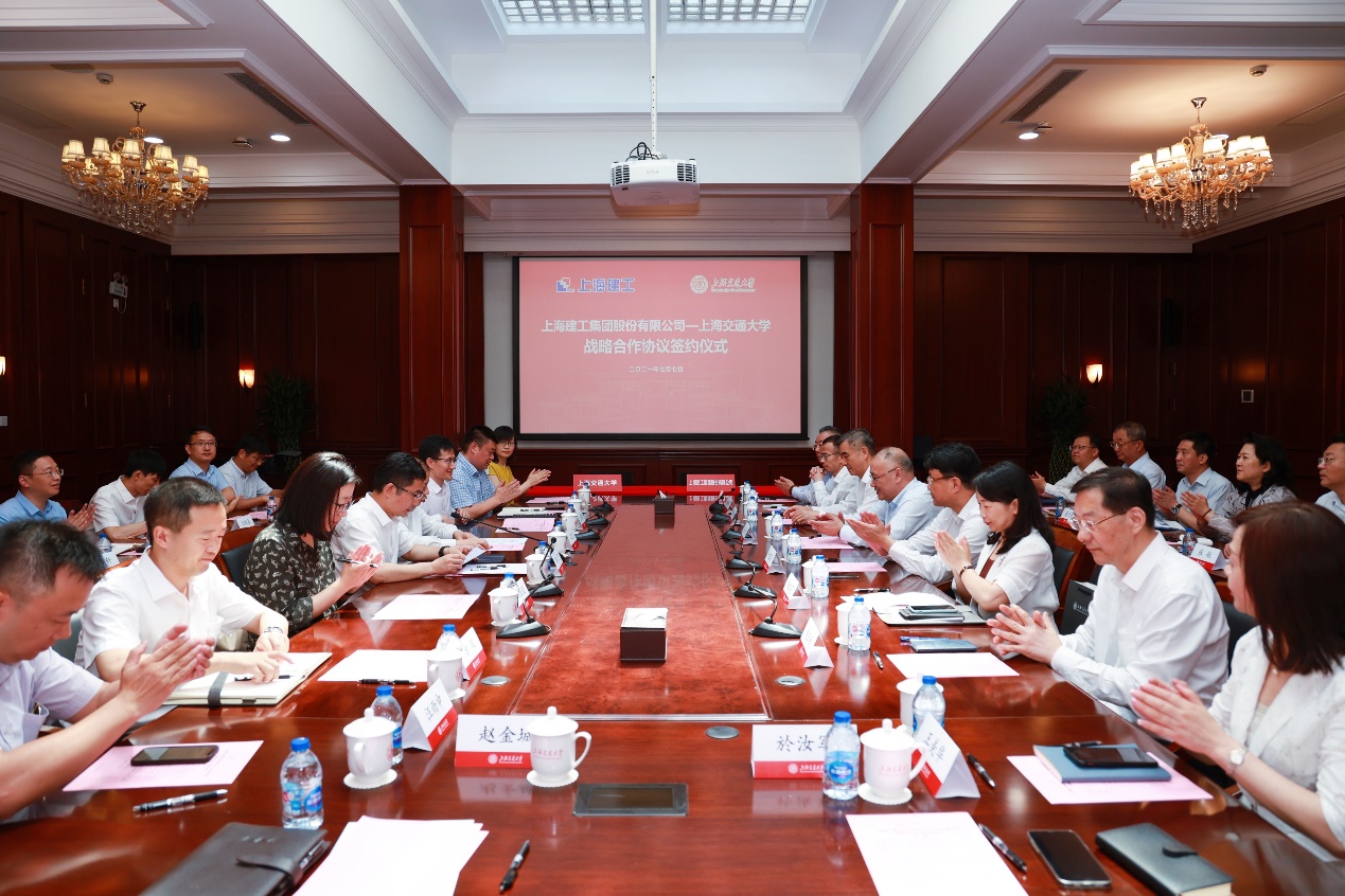 2021年7月7日,上海交通大学与上海建工集团战略合作协议签署仪式在上海交通大学徐汇校区隆重举行。上海建工集团党委书记、董事长徐征,副总裁叶卫东,副总裁蔡国强,党委委员、工会主席殷红霞,总工程师陈晓明以及其他上海建工集团相关部门、所属单位负责人;上海交通大学校长、中国工程院院士林忠钦,党委常委、副校长王伟明,党委常委、党委宣传部部长胡昊,基建处处长徐放,凯发官网 党委书记周薇,环境科学与工程凯发 党委书记胡薇薇,设计凯发 党委书记方曦以及来自学指委、发展联络处、科研院、安泰经管凯发 、凯发官网 等部门和凯发 的相关负责老师出席本次签约活动。签约仪式由胡昊主持。