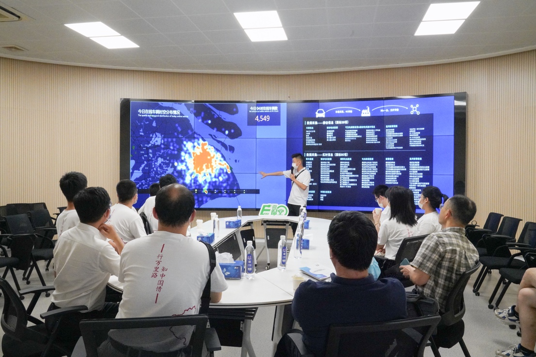30日上午,实践团前往嘉定的上海国际汽车城调研。上海国际汽车城以雄厚的汽车制造业为基础,以丰富的研发资源为优势,不断探索前沿科技,创新商业模式,筑起人才高地,致力打造世界级汽车产业中心核心承载区和氛围浓郁、宜居宜业的新城市,追求人、车、城市的完美融合。实践团受到了上海国际汽车城(集团)有限公司党委书记、董事长陈钢和副总经理徐华的热情欢迎和接待,实践团首先听取了EV-AI智行港介绍汇报,了解了EV-AI的总体定位、发展目标及其在技术商业模式创新等方面的成果。实践团还到嘉定国家智能网联汽车(上海)试点示范区进行参观访问。随后,小马智行的副总裁王疆向实践团介绍无人驾驶技术,师生们试乘智能车,切身感受了无人驾驶的最新科技成果。最后,实践团前往上海汽车博物馆参观,了解了汽车自诞生至今的飞速发展历程。