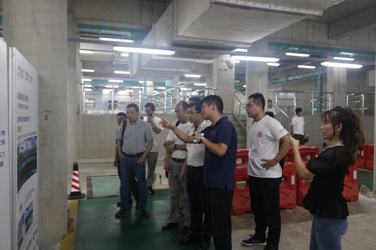 30日下午,实践团前往国投中国水环境集团旗下的嘉定南翔下沉式再生水厂PPP项目参观。南翔下沉式再生水厂是全国首批、上海地区首个PPP示范项目,也是华东地区首座下沉式再生水厂。它将污水处理厂建于地下,地面空间则建设了开放式水生态绿地公园和科普教育中心。实践团在中国水环境集团上海嘉定公司总经理毛瑞和运管部经理王佳的带领下,参观了地面公园和地下生产两个区域。