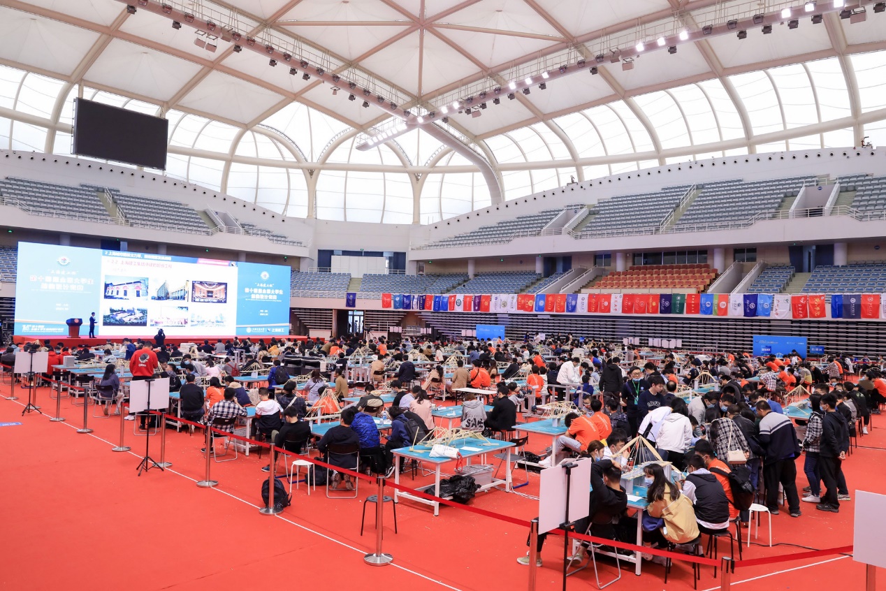 经分区赛选拔,本届全国大学生结构设计竞赛共有来自111所院校的112支参赛队伍在上海交通大学同台竞技。现场首先通过一段视频短片回顾了大赛过程中的精彩瞬间。一张张自信、坚毅的脸庞彰显了同学们青春的朝气和昂扬的斗志,现场精密巧妙的结构展现了中国高校全体土木人的学识和才智。