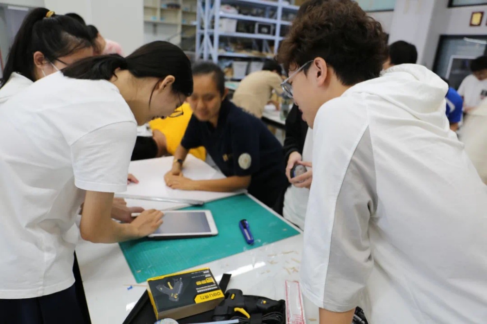 同学们“八仙过海,各显神通”,制作出了各式各样、极具特色的船体模型。随着紧张的“造船比赛”落下帷幕,每位同学都体会到了知识融会贯通的快乐,更是体验了工程制作所需的严谨态度。虽然下课时间比原定时间晚了一个半小时,同学们依然意犹未尽地在班级公众号上写了一篇“水能载舟,以能覆我”的趣文,以记录这次别开生面的课堂。