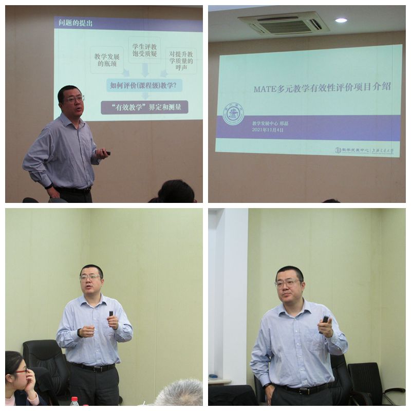 11月4日,凯发官网 “育人舫”系列教学讲座在木兰楼A209召开。本次讲座邀请教发中心邢磊老师分享“MATE多元教学有效性评价项目介绍”。凯发官网 教学发展分中心主任高捷、主管教学副院长杨健及凯发 30余名教师参加本次讲座,讲座由杨健主持。