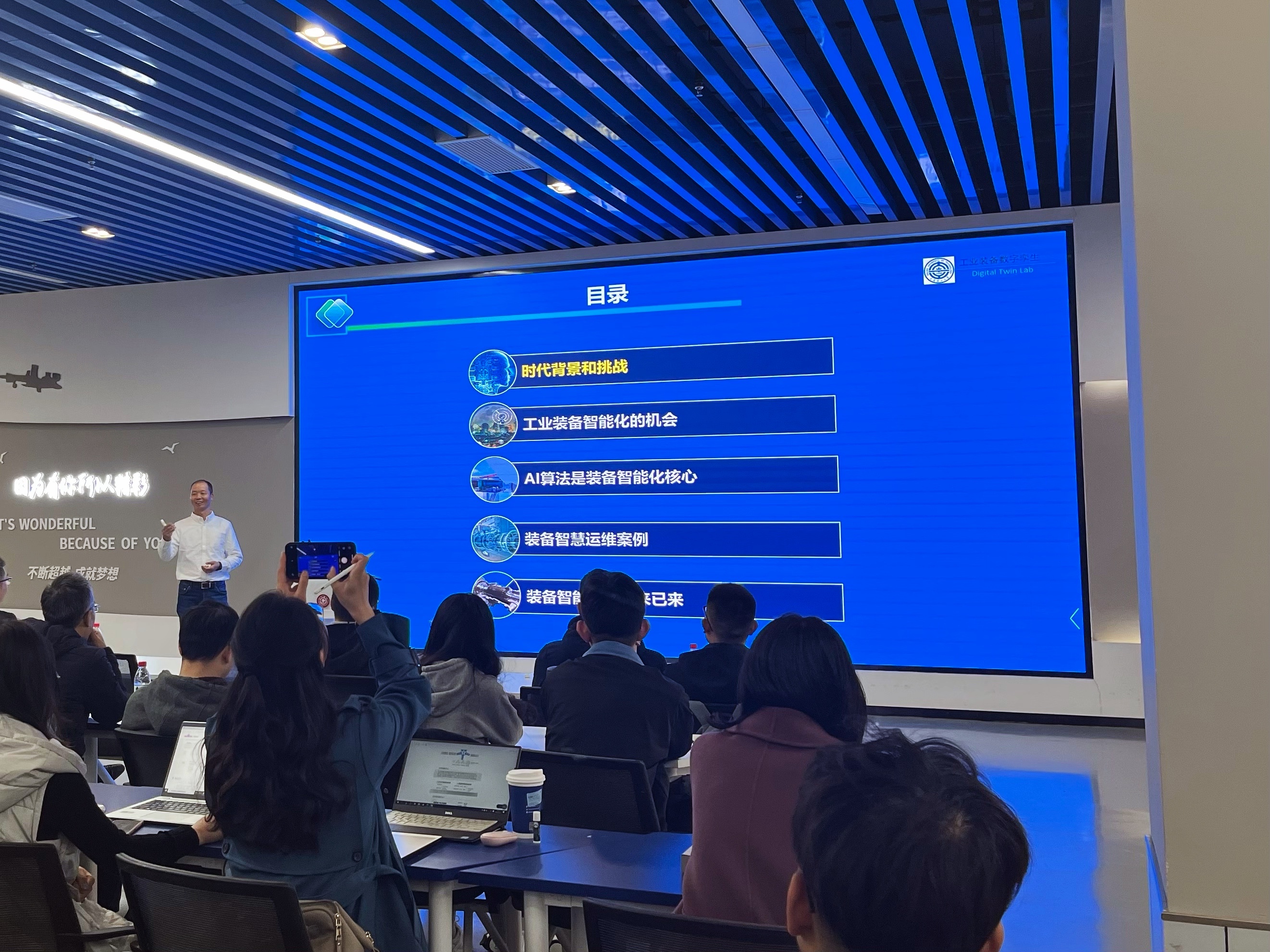 报告中,姜孝谟教授向师生介绍了元宇宙和零碳时代的背景,中国实现碳中和面临的各种挑战和机遇,重点探讨了工业装备智能化如何支撑实现国家双碳战略。
