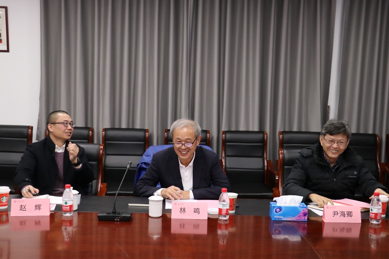周薇对双方参会人员进行了简要介绍。胡昊介绍了交大发展历程,“因图强而生、因改革而兴、因人才而盛”是交大100多年发展的缩影,回顾了中国交通建设股份有限公司与上海交大的合作历程,并代表上海交通大学对林鸣院士一行的来访表示热烈的欢迎。