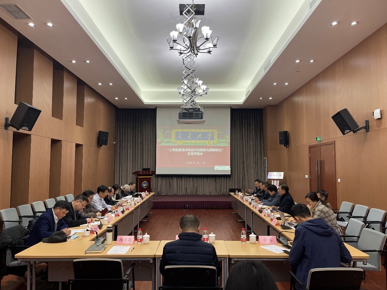 2022年1月11日,“上海市发展海洋核动力的前景和策略研究”项目在上海科学会堂召开启动会,会议由项目负责人、上海交通大学校长林忠钦院士主持,上海市科学技术委员会战略规划处、上海市核电办公室、上海核工程研究设计院、中国船舶集团有限公司第708研究所、江南造船(集团)有限责任公司、上海市中国工程院院士咨询与学术活动中心、上海交通大学等部门和单位专家,项目组核心成员参加会议。