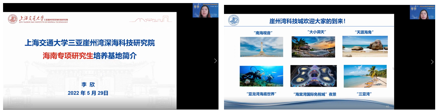 上海交通大学三亚崖州湾深海科技研究院李欣副院长为考生介绍了海南专项联培基地。本次夏令营也特别开放了海南专项联培基地硕士研究生推免报名通道。