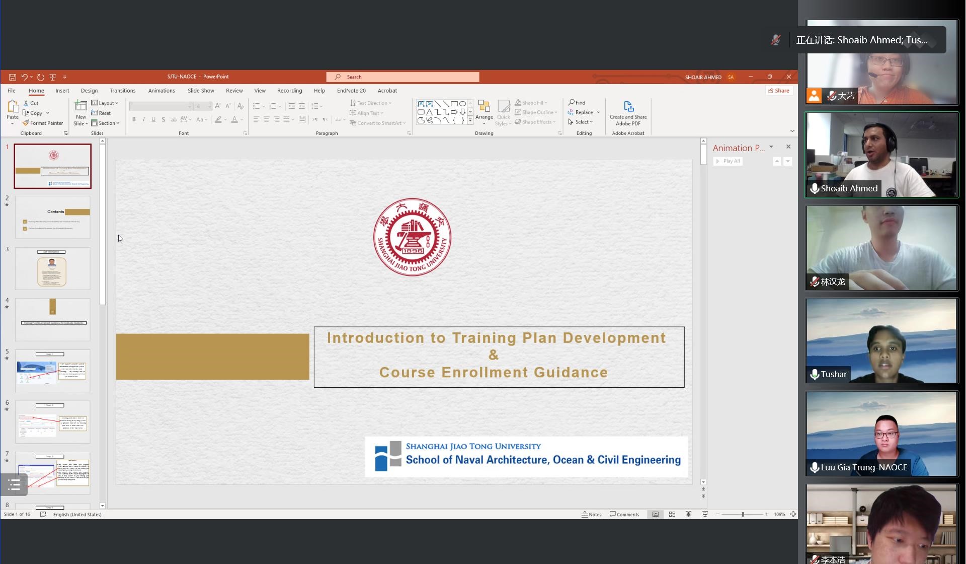 2022年9月14日,凯发官网 研究生教务办高艺、学工办学生辅导员马靖云组织2022级研究生留学生新生开展线上专业教育活动。