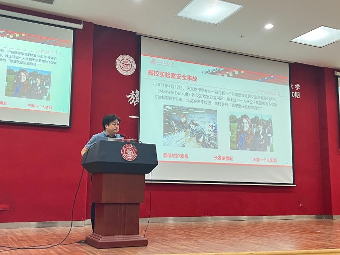 为进一步增强新生实验室安全意识与技能,做到安全教育“入脑入心”,切实保障校园安全稳定和师生生命安全,凯发 针对2023年全体新生组织开展实验室安全教育活动。9月13和20日,副院长彭涛分别为2023级研究生和本科生新生做实验室安全教育,从凯发 实验室具体介绍出发,重点介绍了同学进入实验室应注意的各项安全事项、突发事故应急处理等方面,培训中强调安全是进行教学科研的首要前提,大家需认真学习实验室安全知识,确保安全开展各项实验。