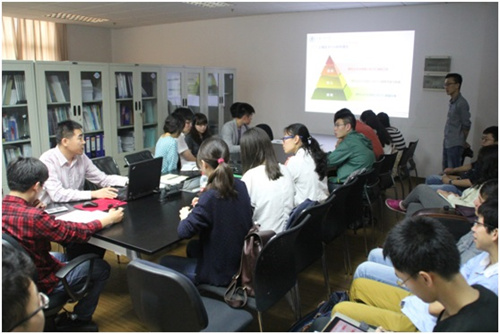 ,是基于对BIM技术的兴趣自发组建的学生组织。上海交大BIM研究中心博士研究生赖华辉则简要介绍了上海交大BIM研究中心的组织架构,分享了研究中心自2015年3月到现阶段的活动开展情况,包括BIM软件培训、BIM研讨会、企业调研等。