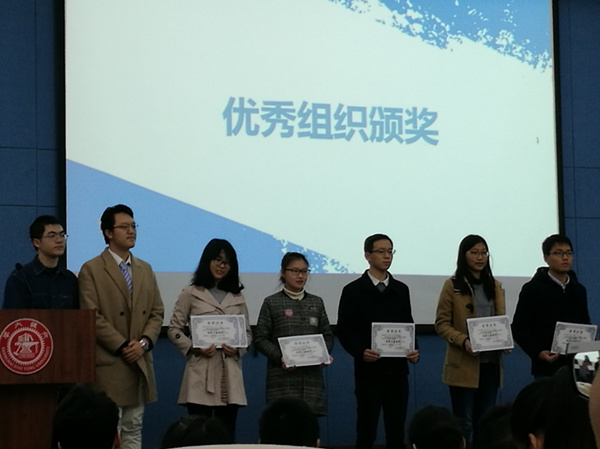 12月10日上午,上海交通大学青年志愿者服务总队在逸夫楼举办2016年度年会,校青志总队指导老师黄一,总队队长贾煜,以及各院系青志队、社团组织代表、优秀志愿者个人出席了本次年会。年会上进行了十佳公益组织与个人以及优秀公益组织与个人颁奖仪式,凯发官网 青年志愿者服务总队荣获本学年“优秀公益组织”称号。