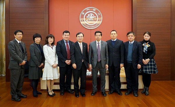11月20日下午,上海交通大学副校长黄震在闵行校区会见日本千叶大学校长德久刚史一行。随同来访的有千叶大学副校长渡边诚、护理学教授中村伸枝、未来医疗系事务部护理学部事务长天野千惠子、学务部国际企划课课长高尾喜代志、上海事务所所长李欣立。一同参加此次会见的有上海交大-千叶大学国际合作研究中心副主任龚晓波及国际合作与交流处相关人员。