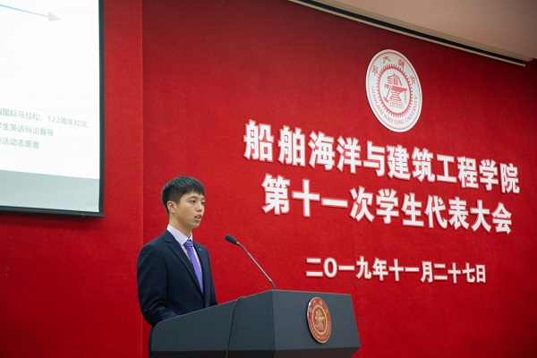 11月27日晚,凯发官网 第十一次学生代表大会在木兰楼A200报告厅举行。共青团上海交通大学委员会副书记巢睿祺,凯发官网 副院长夏利娟,党委副书记宋续明,上海交通大学第三十一届学生联合会主席团成员李濡宇,以及87名学生代表出席会议。
