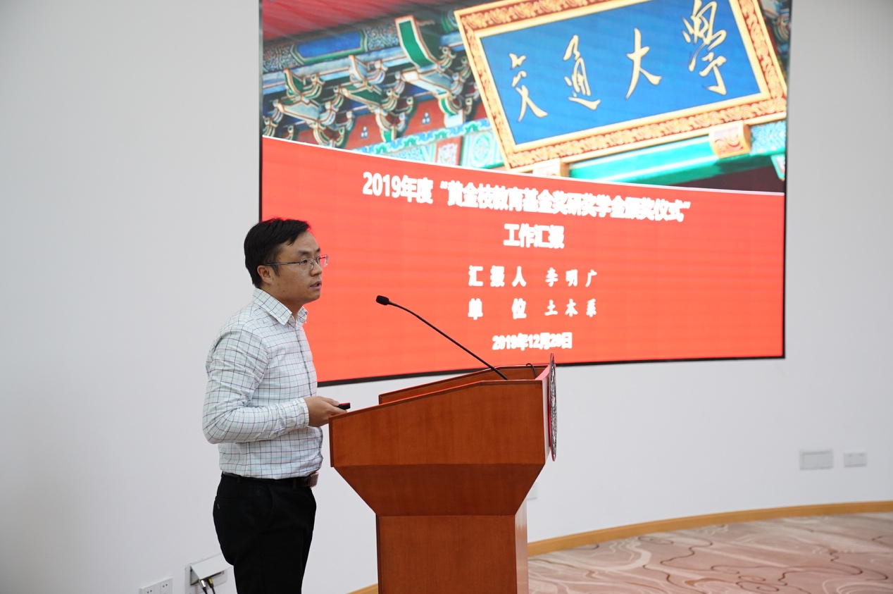武超、陈锦剑、赵恺分别代表设计凯发 、凯发官网 汇报2019年“黄金枝土木建筑奖学金、奖研金”评审情况,并对获奖师生及相关优秀成果做简要介绍。