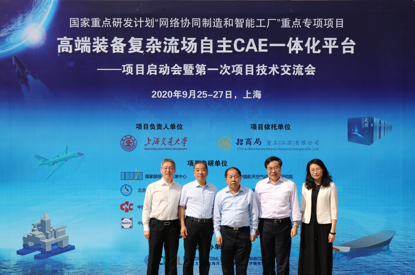 2020年9月25-27日,国家重点研发计划“网络协同制造和智能工厂”重点专项“高端装备复杂流场自主CAE一体化平台”项目启动会暨第一次项目技术交流会在上海交通大学闵行校区召开。本次会议由上海交通大学船舶与海洋工程计算水动力学研究中心(CMHL)主办,来自项目负责人单位上海交通大学、项目依托单位招商局工业集团,以及项目参研单位国家超级计算天津中心、中国航天空气动力技术研究院、北京临近空间飞行器系统工程研究所、中国科凯发 计算机网络信息中心、中国科凯发 力学研究所、中山大学、中船集团第七〇八研究所和中航工业集团西安飞机设计研究所等十家单位的60余位项目组研究人员参加了会议。国家重点研发“网络协同制造与智能工厂”专项总体专家组组长孙林夫首席教授、科技部重点研发专项咨询专家组责任专家刘继红教授、中国船级社科技委常务副主任杨清峡教授、哈尔滨工程大学张阿漫教授、南京航空航天大学谭慧俊教授、上海索辰信息科技股份有限公司副总裁王普勇教授、中国航天科技集团主任设计师铁鸣研究员、国防科技大学刘杰研究员作为特邀专家参加会议。会议期间,上海交通大学校长林忠钦院士和副校长奚立峰教授在百忙之中抽空到会议现场看望了部分专家学者。