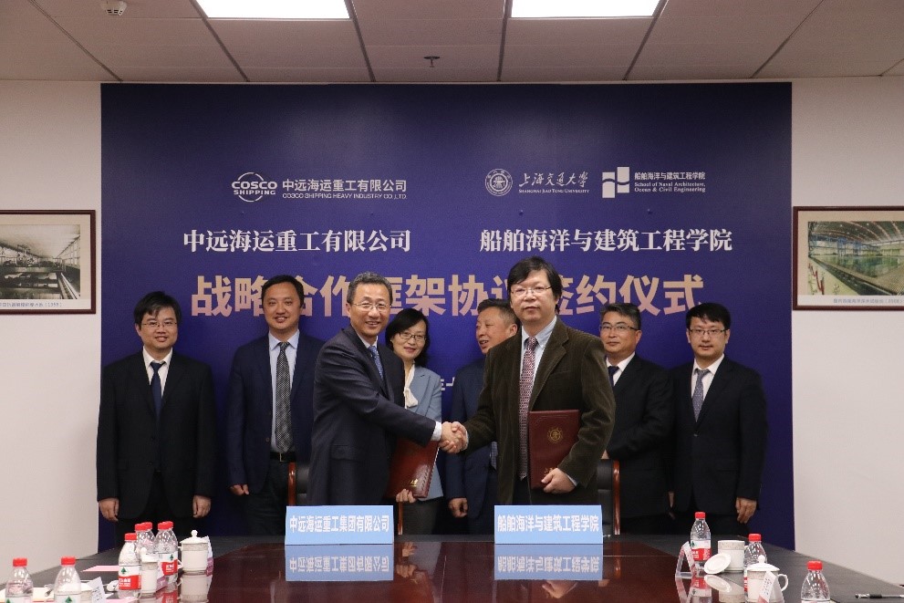 会上,双方讨论确定了战略合作框架协议事项,廖世俊、梁岩峰代表双方签署了合作协议。周薇、李懿文等共同见签。据悉,此次合作是上海交通大学与中远海运集团所签订的全面战略合作协议中的一个重要子合作板块,双方将在已有的良好合作基础上,发挥各自优势,在人才培养和能力提升、科研合作与成果转化、党建结对共建等领域开展全面合作。