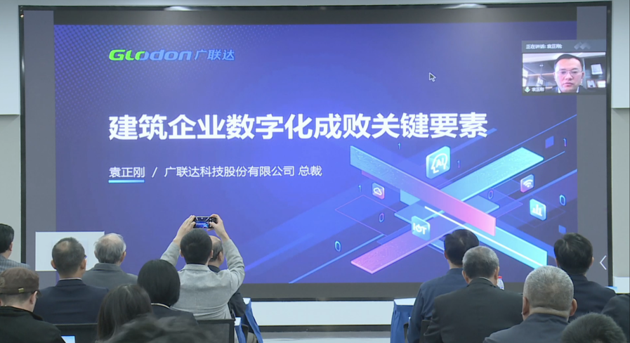 在专家致辞后,广联达科技股份有限公司董事、总裁袁正刚作题为“建筑企业数字化成败关键要素”的特邀报告。袁正刚分析了企业对数字化的迫切需求以及目前应用的难点,介绍了数字化的发展现状、发展方向及在建筑行业中的重大作用。他指出,数字化充满挑战与机遇,只要选对方向,躬身入局,快速迭代,必定成功!