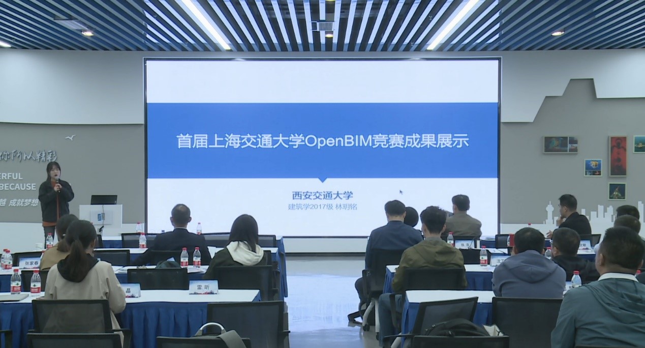 下午的学术交流活动由张家春主持。在分享环节上,首届上海交大OpenBIM设计作品竞赛一等奖获奖团队代表上海交通大学的王晶和李世凯同学、西安交通大学的林玥铭同学、西南交通大学的雷昕同学分别以本组参赛项目为例,展示了在OpenBIM竞赛中的成果,分享使用OpenBIM技术进行协同设计的理解和感悟。三组代表都对天磁NMBIM协同设计平台在多专业协同设计中所起的作用进行了详细的描述,并对NMBIM自主研发的NMI数据格式表示了极大的兴趣。同学们表示,在利用NMBIM将IFC文件转换为NMI文件后,模型的打开速度提升了5-10倍,大大提高了多专业协同的效率。