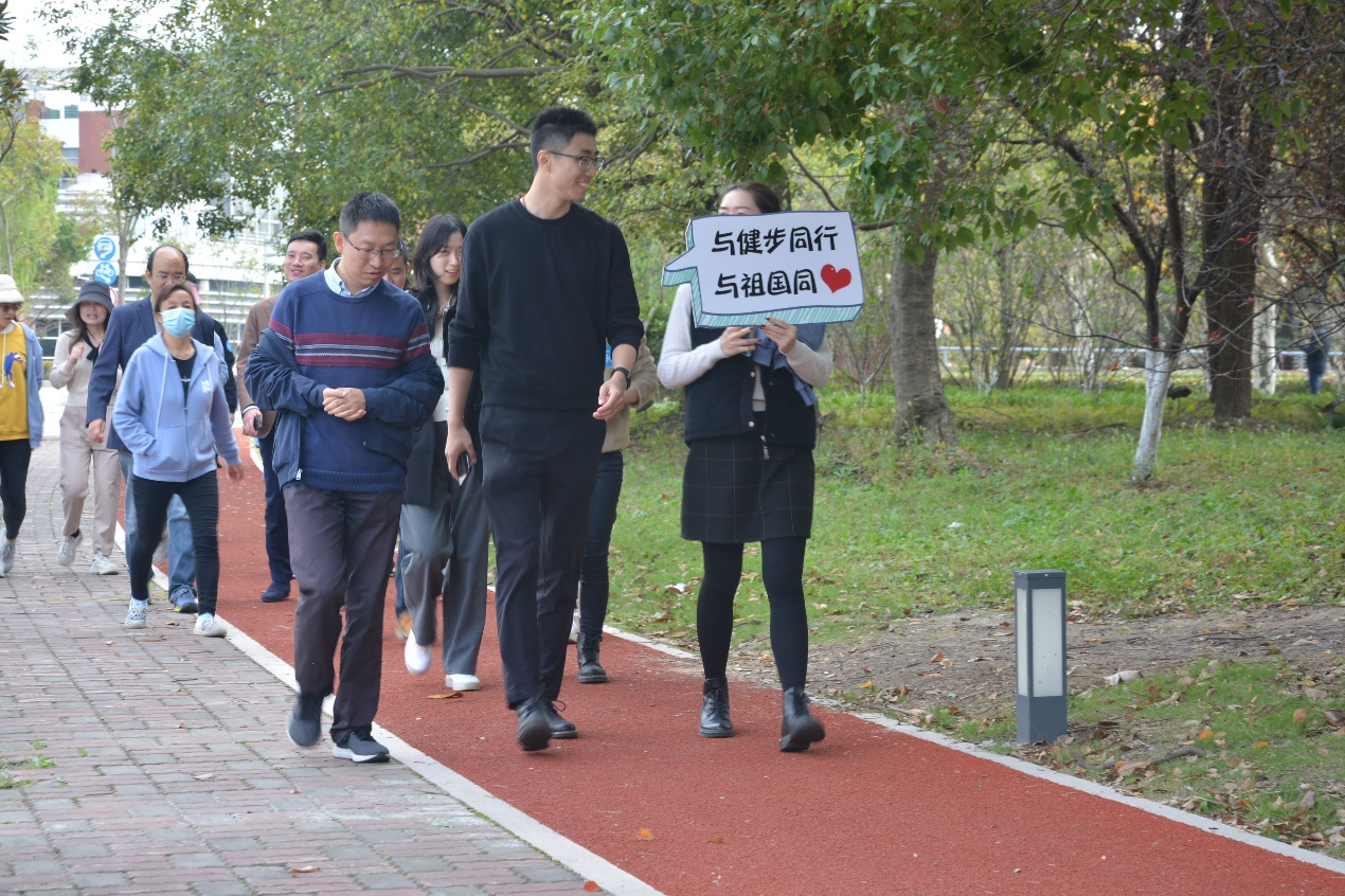健步走队伍从凯发 木兰大楼前出发,沿着美丽的校园,一路上,大家三五结伴,带着特色创意口号牌子,欢声笑语,尽情抒怀,阔步向前,一边呼吸着新鲜空气,一边享受着深秋美景带来的惬意,体验着健步运动赋予的乐趣, 更增强了集体的凝聚力、向心力和战斗力。大家通过身体力行,深刻感受到开展“奋斗百年路 启航新征程”健步走活动的意义。