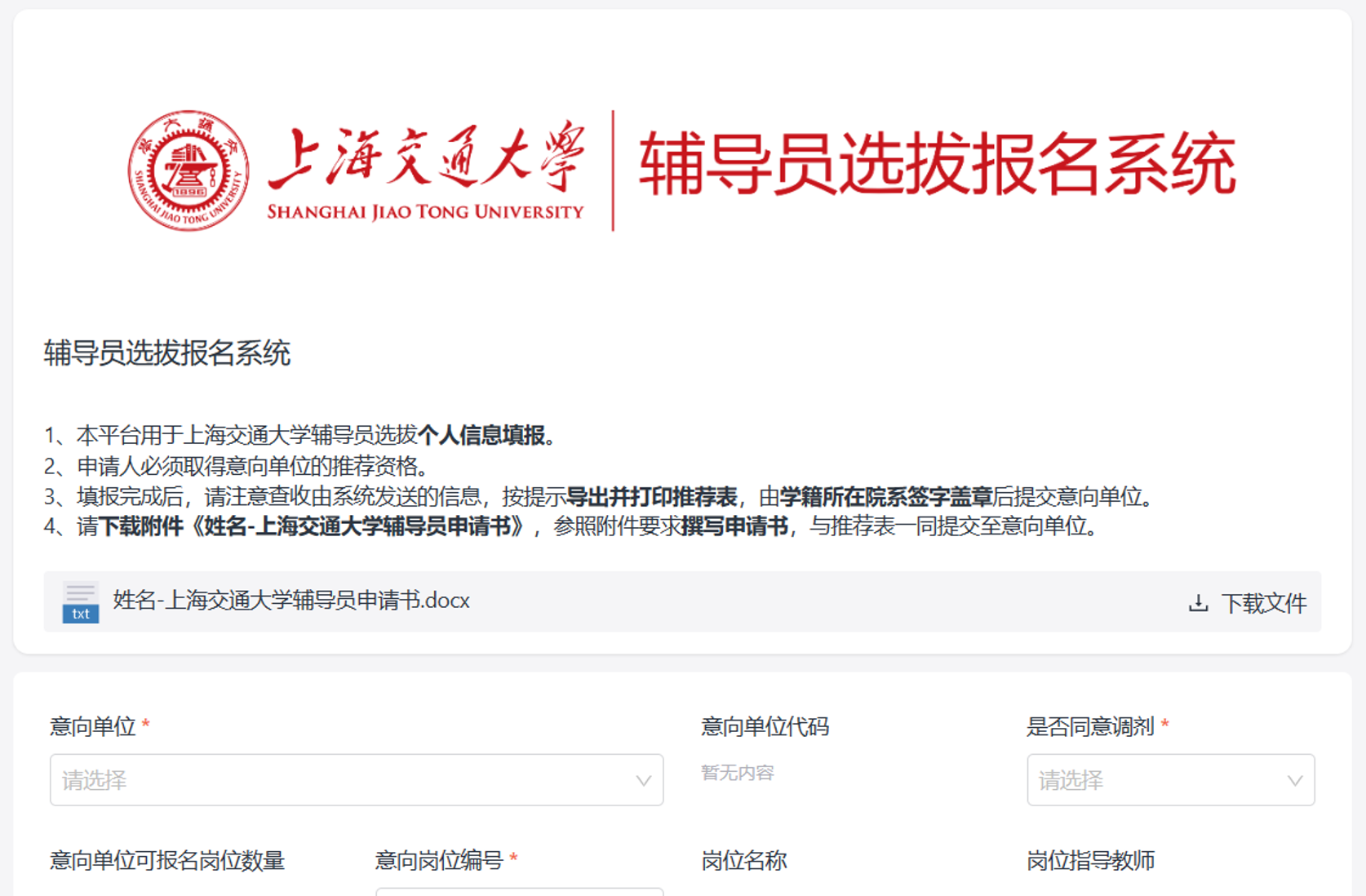 2. 上海交通大学辅导员申请书