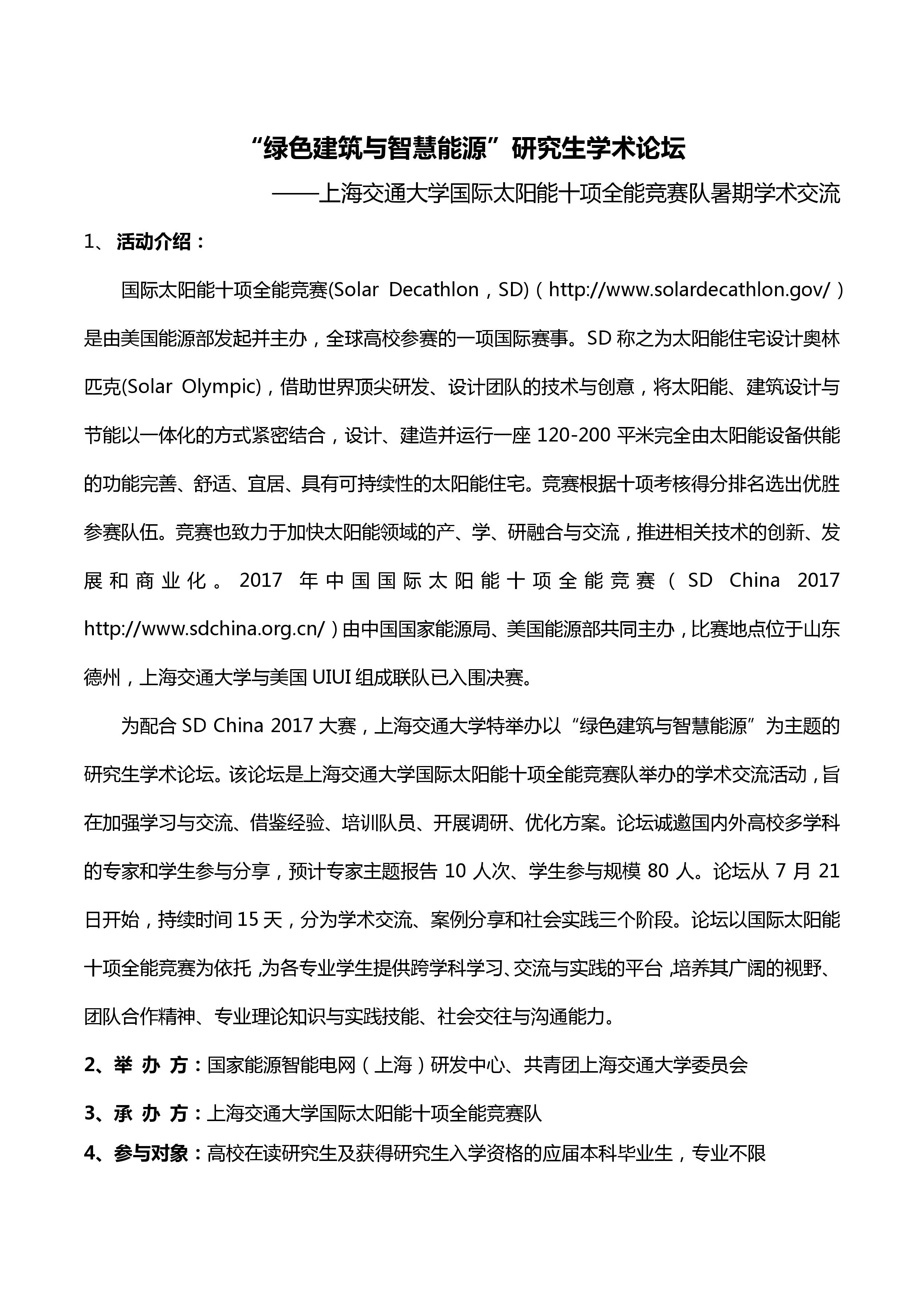 “绿色建筑与智慧能源”研究生学术论坛活动通知