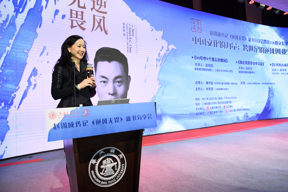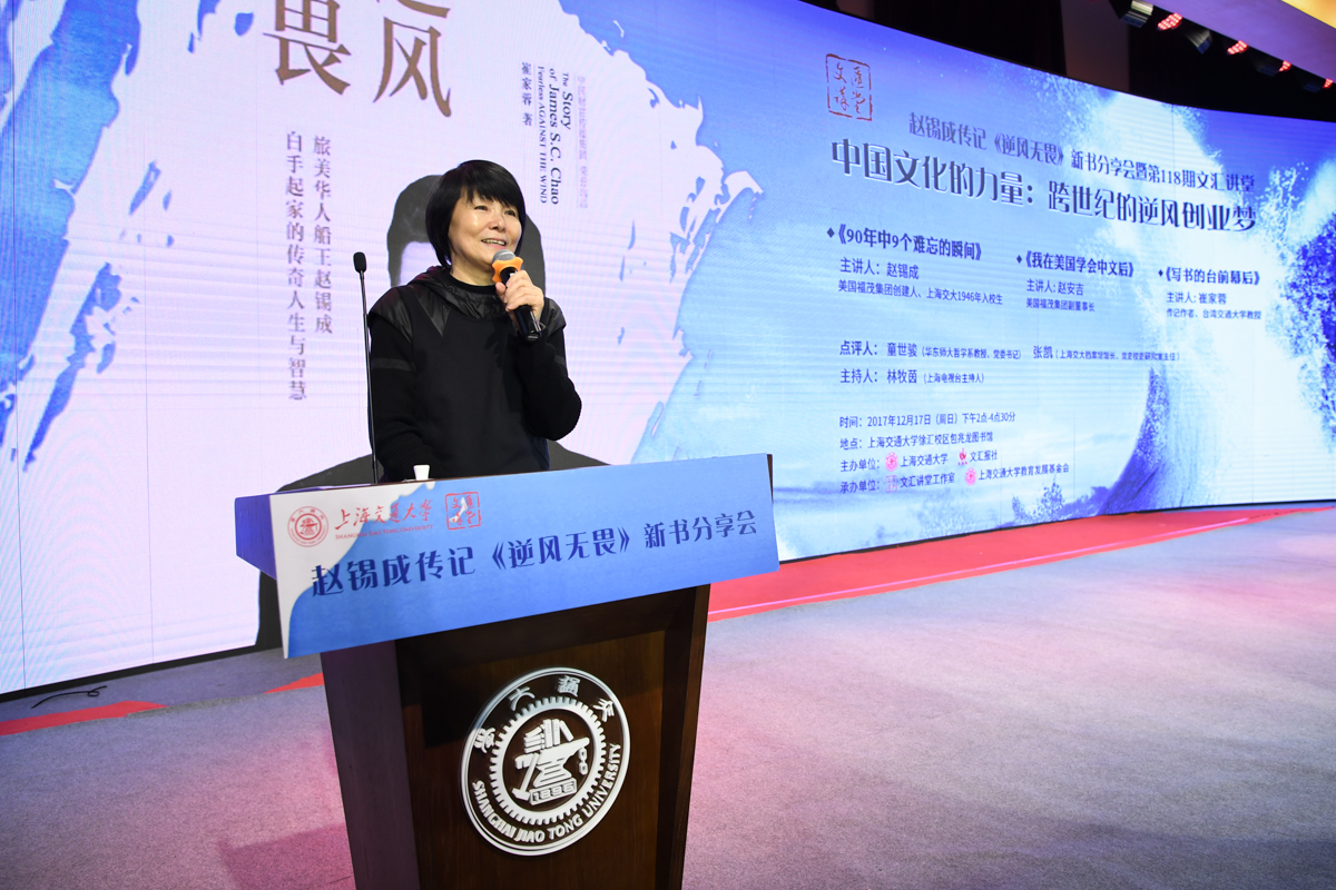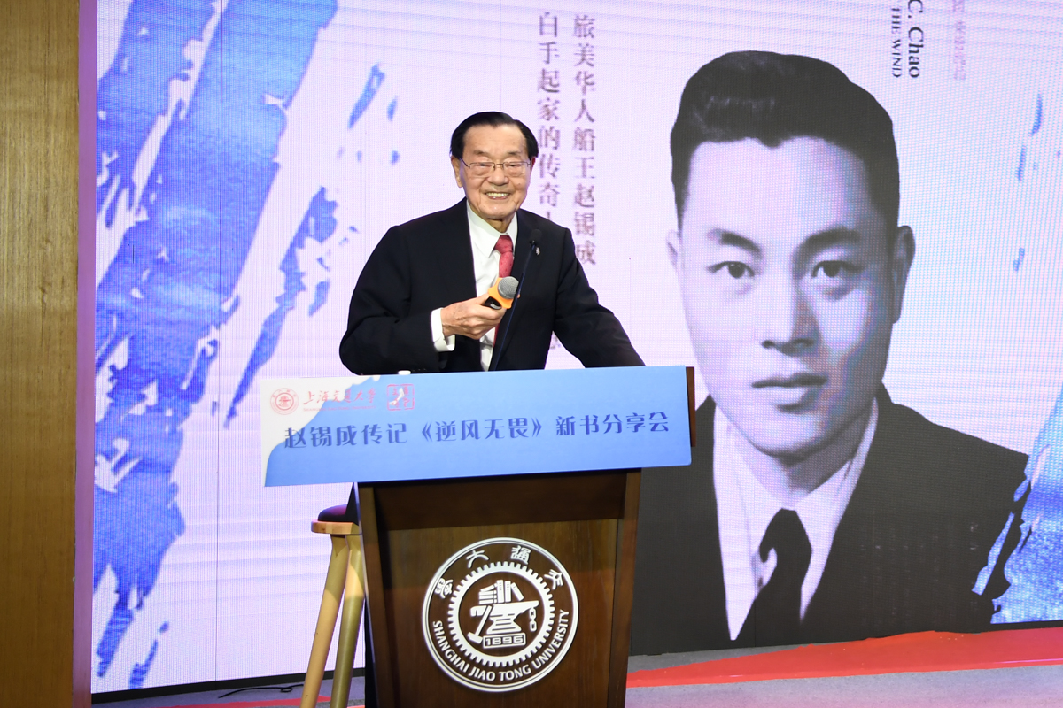 丁酉岁末,暖阳融融,游子归家,思源不辍。12月17日,古朴清幽的徐汇校区包兆龙图书馆演讲厅迎来了著名校友、旅美华人船王、福茂集团董事长赵锡成学长,六女儿、福茂集团副董事长赵安吉女士,传记作者、台湾交通大学教授崔家蓉女士一行,做客文汇讲堂,与母校师生及广大读者分享人生经历,共话家国情怀。市人大常委会副主任、校党委书记姜斯宪,党委常委、副校长张安胜表达了全校师生对赵学长及亲友一行的热烈欢迎。市政协对外友好委员会、市侨办、市公共外交协会、市海峡两岸交流促进会、市台办及高校代表出席新书发布会。本次活动由上海交通大学、文汇报社联合主办。上海电视台资深主持人林牧茵主持活动。