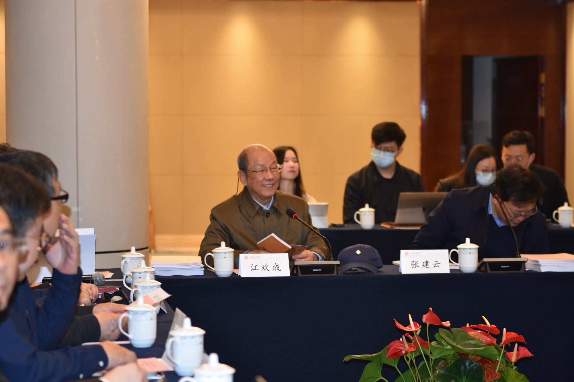 项目负责人、中国工程院院士江欢成以及项目组成员、中国工程院院士肖绪文,上海交通大学教授林少培、胡昊,同济大学教授王广斌、卢昱杰、刘曙光,上海交通大学副教授徐峰、张家春,上海江欢成建筑设计有限公司教授级高工杜刚、程之春、上海交通大学设计总院副院长赵国华等出席本次会议。