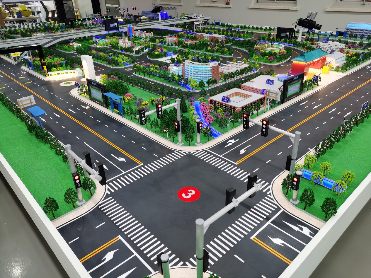 为了丰富交通运输专业“学在交大”的内涵,进一步提升学生科创及实践教学环境,近日,交通运输工程系顺利完成了智慧交通虚拟仿真平台的搭建,该平台长6米,宽4米,以闵行校区为原型,采用半实物仿真的形式,复现了闵行校区内部及周边路网、校园主要建筑的布局,在突出道路交通主题的同时,也包含了轨道交通系统。该平台集成了雷达、超声波、红外线等常用的智慧交通数据检测技术及设备,交叉口电子警察系统、自适应及绿波带信号配时系统,驾驶行为在环模拟系统,突发事故紧急救援调度方案生成系统,智能车辆自动驾驶系统等,所有系统均开放二次开发接口,能够为学生通过观察和动手实践来对智慧交通各个系统的基本原理和运作流程有更加深入的理解和掌握,同时也可以作为学生进行交通科创项目的载体。