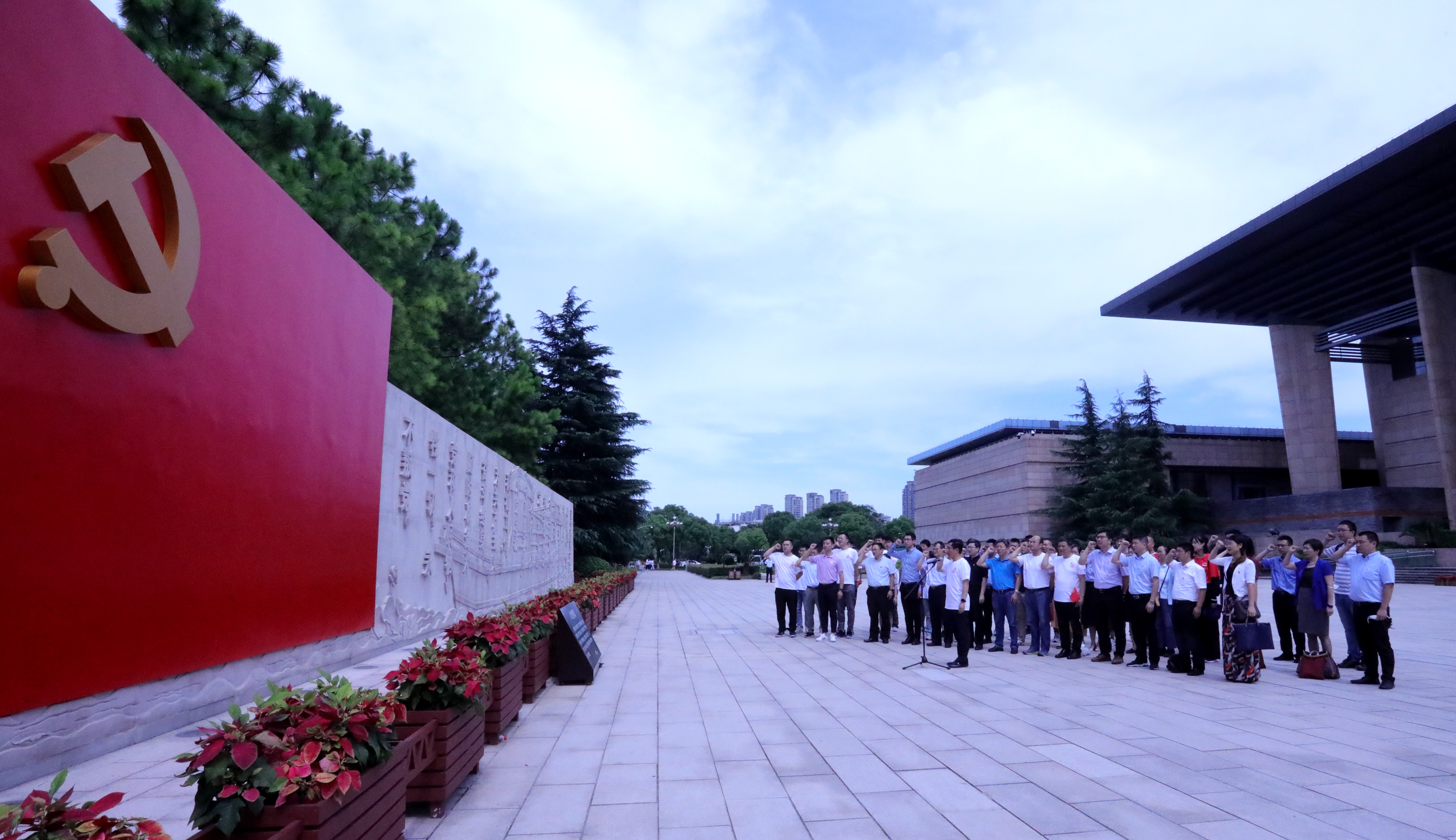 在南湖纪念馆宣誓墙前,胡昊领誓,党员们面对鲜红的党旗,庄严举起右手,重温入党誓词,让思想和灵魂受到了一次特殊的洗礼。