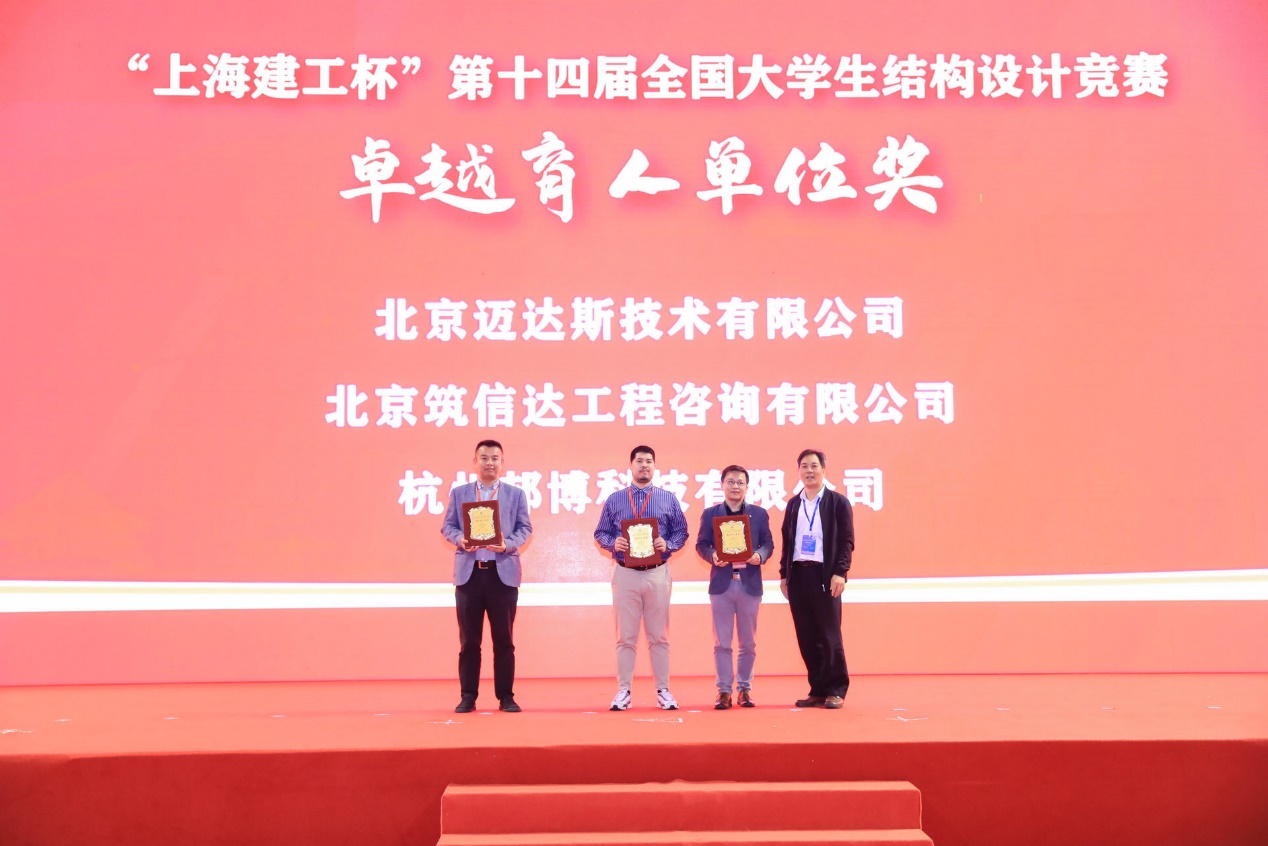 经全国大学生结构设计竞赛专家委员会、秘书处和承办方共同研究决定,授予陕西省西安建筑科技大学秘书处等13所高校秘书处“优秀秘书处奖”;授予安徽建筑大学等34所高校“优秀组织奖”;授予上海交通大学“高校突出贡献奖”;授予上海建工集团股份有限公司“全国大学生结构设计竞赛锦旗”;授予“北京迈达斯技术有限公司”等3家企业“卓越育人单位奖”。
