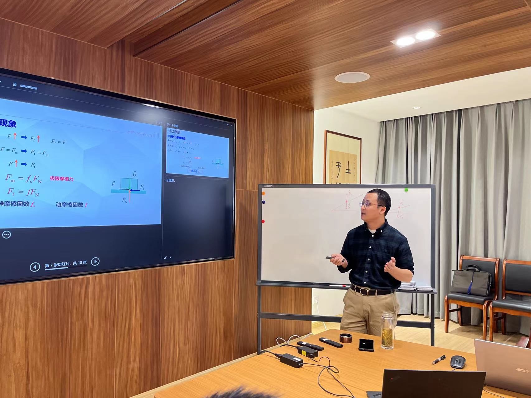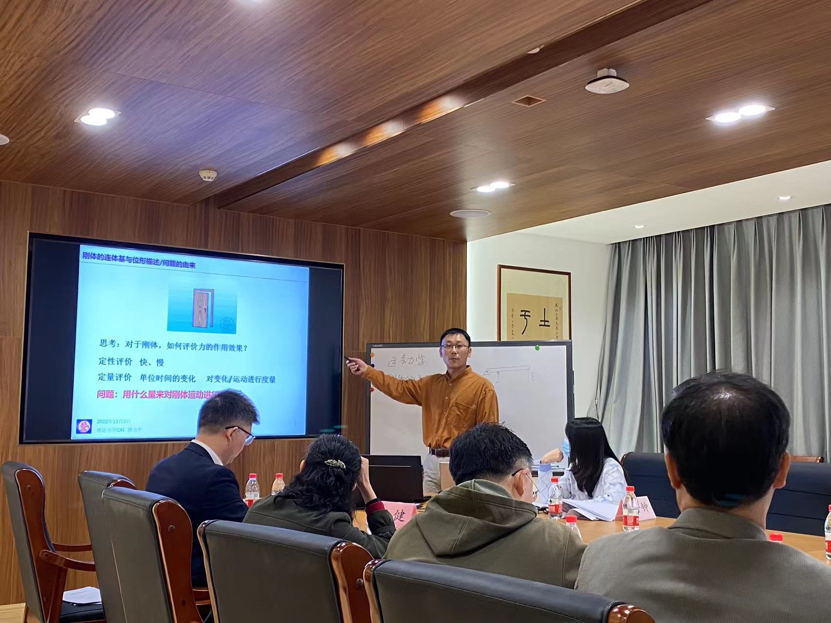 本届教学竞赛共有5位教师参加,比赛分为三个环节:一是提交课程的教学大纲和教学设计,课程教学大纲要求反映参赛教师教学思想、课程设计和教学方法,清晰说明整门课程的设计思路,突出教学改革与创新。二是现场课堂教学,五位参赛教师提前准备3个学时的教学设计及课件,通过抽签决定参赛顺序、参赛课程节段,依次上台进行20分钟课程教学。三是进行教学反思,教师从教学理念、教学方法、教学过程三方面着手,反思所授课程在培养体系里的定位和贡献,拟采用哪些教学方法、考评形式等。