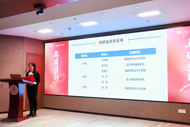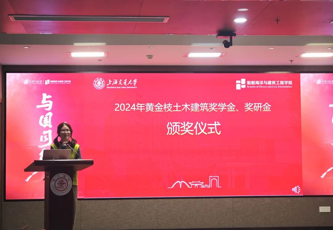 分别汇报了奖研金、奖学金的评审情况,获奖师生不仅在科研和学业方面表现出色,而且积极参与各类科创、文艺活动,投身公益工作,综合素质过硬,注重全面发展。李毅宣读2024年度上海交通大学“黄金枝土木建筑奖学金、奖研金”获奖名单。