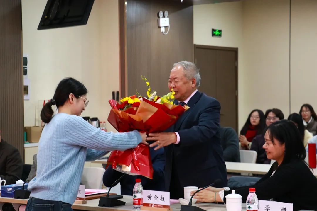 学生代表向黄金枝教授献上鲜花,表达对黄金枝教授的感谢。