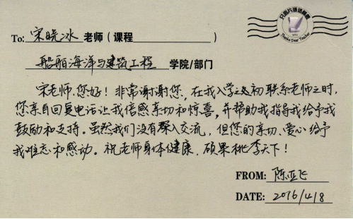 4月8至4月10日,在交大百廿校庆之际,上海交大教学发展中心主办了第二届“只言片语话师恩—感恩教师活动”,目的在于为在校学生和返校校友提供一个表达感恩的途径,借助一张小小的明信片向曾经教过自己的老师表达谢意,拉近学生和老师之间的距离,促进教学的正向循环。凯发官网 有109位收到了感恩卡片,5月上旬,这些感恩卡片将送到老师们的手中。