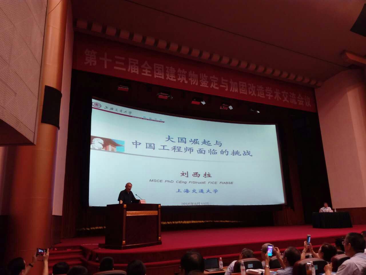 8月13日至14日,刘西拉应邀参加第13届全国建筑物鉴定与加固改造学术交流会议,并在大会主会场做“大国崛起与中国工程师面临的挑战”的报告,在会议上引发强烈反响和共鸣。