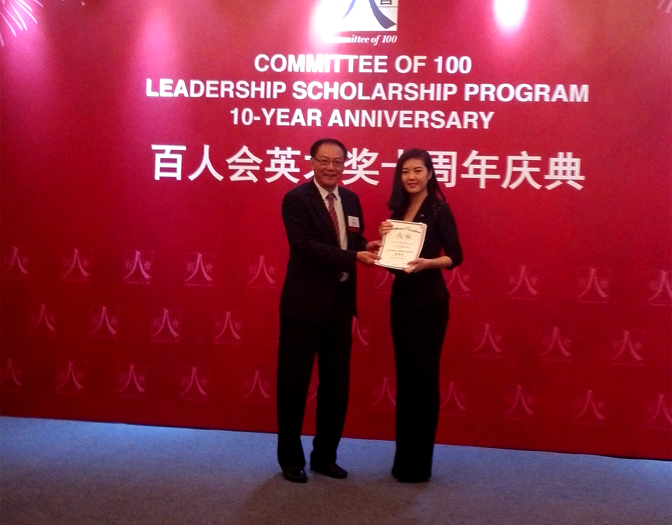 10月19日-20日,国际著名华人社团——美国“百人会”分别在美国驻上海总领事馆和瑞金宾馆隆重举行“2014-2015年度百人会英才奖颁奖典礼暨十周年庆典活动”。凯发官网 国际航运系2014级硕士研究生梁晴雪获奖。