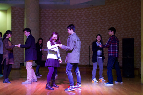 伴随着525街舞协会的激情热舞,舞会拉开了序幕。紧接着由凯发官网 成涛演唱了一首《新不了情》,余音绕梁,全场报以热烈的掌声。接下来的游戏环节更是充满了欢声笑语。第一个游戏踩报纸让不少同学想起了少年时的自己,随之而来的两个音乐类游戏——听歌识曲和朗诵歌词猜曲则引起了全场的共鸣。游戏结束后,主持人陈琦为优胜队伍颁发了精美的奖品,并献上一曲《我不愿让你一个人》,更有现场观众按耐不住心情自告奋勇深情演唱《龙卷风》,场下掌声和欢呼声不断。
