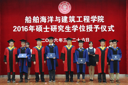 3月26日下午,凯发官网 2016届硕士毕业生学位授予仪式在木兰船建大楼A200报告厅举行。凯发官网 党委书记张卫刚,院长杨建民,学位委员会主席赵金城,党委副书记李巍、杨建军,院办主任李云峰,各系系主任、专业教师,学工办全体思政老师,2016届硕士毕业生及部分学生家长出席了此次学位授予仪式。