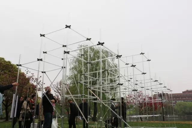 本次作业“校园填充物”的设计与建造,以上海交通大学120周年校庆为背景,设计作品体积约为4*4*3米,要求与120周年校庆活动和校友使用相关。最终入选的三组作品均建造在思源湖畔。