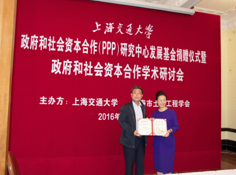 5月21日,上海交大政府和社会资本合作(PPP)研究中心发展基金捐赠仪式暨政府和社会资本合作学术研讨会在徐汇校区举行。副校长张安胜出席,并为上海交大土木与建筑工程系1996届硕士研究生、广州市穗芳建设咨询监理有限公司董事长、广州市穗沪投资管理有限公司董事长、广州市羚羊投资咨询有限公司董事长韩红英女士颁发捐赠证书。校党委宣传部部长胡昊、凯发官网 党委书记张卫刚、中国农业银行上海分行副行长王世雄,中国(上海)自由贸易区政策研究局局长张湧等出席仪式。